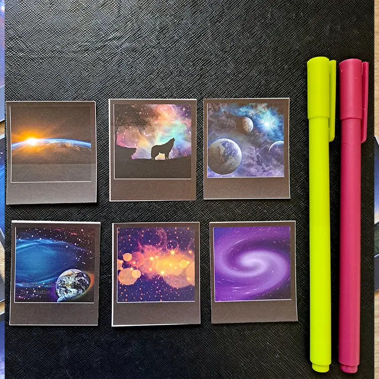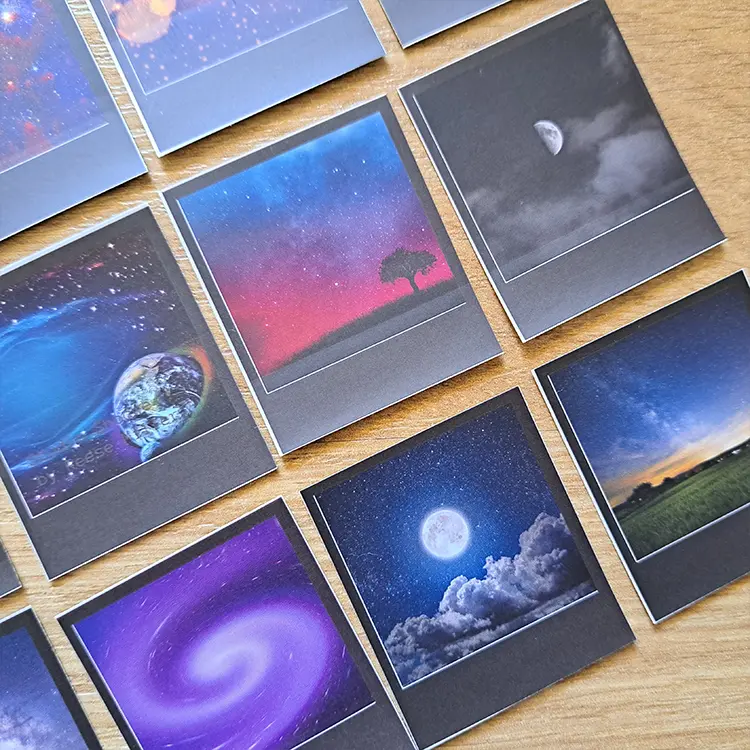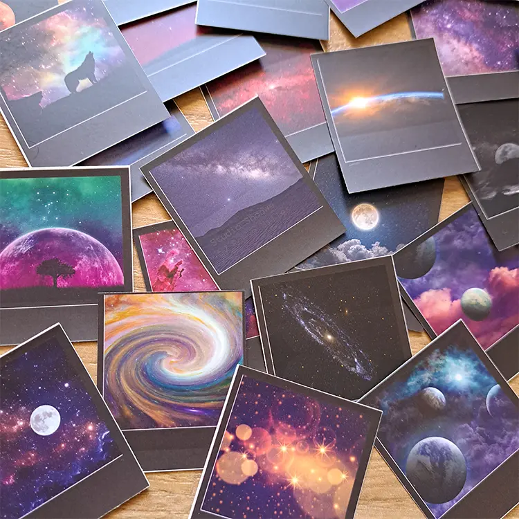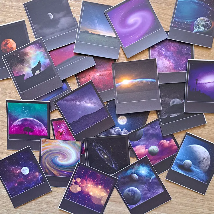 المقاس 4.54 × 5 سم صغير ومرن للـ spreads، الهوامش، البلانر، اللابتوب، أو الهدايا. مصنوعة من ورق ممتاز مغطى بطبقة حماية قوية ضد الخدش والمية، عشان تدوم معاك شهور طويلة. الباكدج 24 قطعة بتصميمات مختلفة تمامًا، هتقدر تعمل كومبوزيشن cosmic يناسب الـ bullet journal بتاعك كل يوم.