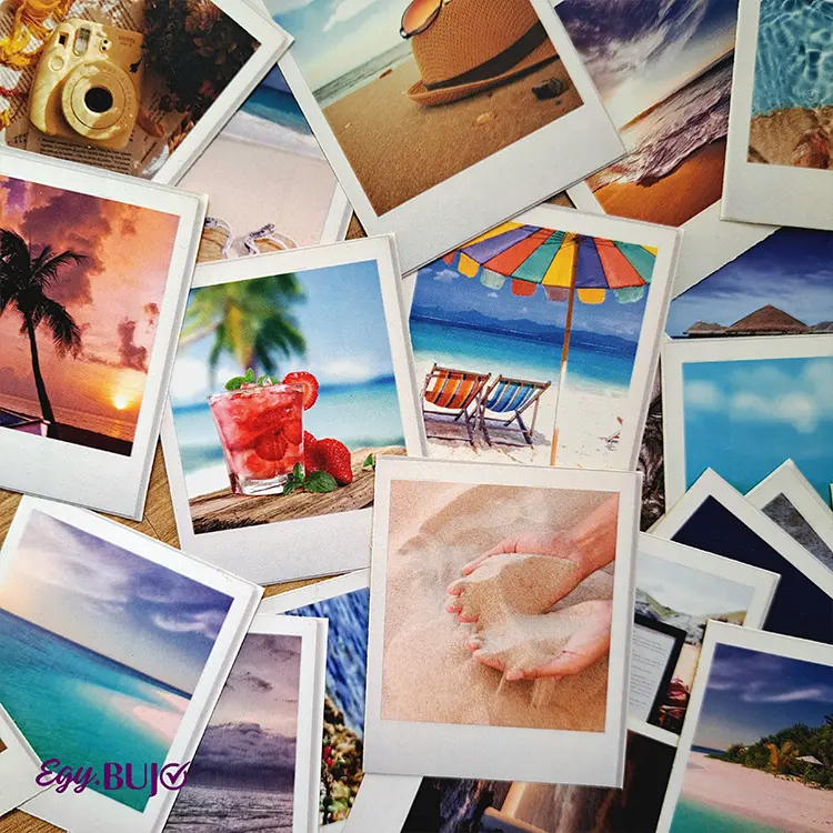 لو بتحبي أجواء الصيف والبحر والسفر، مجموعة ستيكرز صور بولارويد Summer Vibes من Bujo Egy هتنقلك فورًا لجو الشاطئ والهواء المنعش ورحلات المصيف 🏖️✨