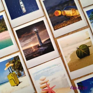 مجموعة ستيكرز صور بولارويد بثيم الصيف والبحر والسفر، تحتوي على 40 صورة مختلفة غير مكررة، بخامة ورق عالية الجودة مضاف لها طبقة حماية للحفاظ على الألوان. مقاس كل صورة تقريبًا 4.3 × 5.5 سم، مثالية للبوليت جورنال وتوثيق الذكريات الصيفية 🌴🌊